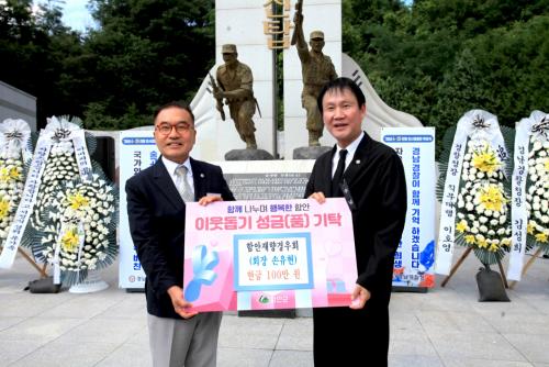 [½Åµ¿¾Æ¹æ¼Û °æ³²ÇÔ¾È=À̽ŵ¿±âÀÚ] ÇԾȱºÀº Áö³­ 25ÀÏ, ÇÔ¾ÈÀçÇâ°æ¿ìȸ·ÎºÎÅÍ ¾î·Á¿î ¼¼´ë¸¦ À§ÇÑ ¼º±Ý 100¸¸ ¿øÀ» ±âŹ¹Þ¾Ò´Ù°í ¹àÇû´Ù. À̳¯ ±âʽÄÀº ÇԾȰæÂû½ÂÀü±â³ä°ø¿ø(ÇԾȱº ´ë»ê¸é ¼ÒÀç)¿¡¼­ ÁøÇàµÇ¾úÀ¸¸ç, ÇÔ¾ÈÀçÇâ°æ¿ìȸ ȸÀå ¼ÕÀ¯Çö, ´ëÇѹα¹ÀçÇâ°æ¿ì¡¦