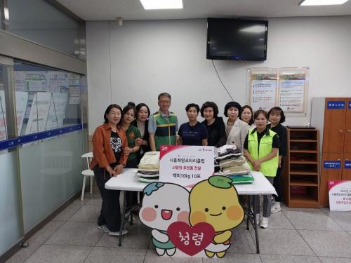 [½Åµ¿¾Æ¹æ¼Û ½ÃÈï½Ã=À̽ŵ¿±âÀÚ] ½ÃÈïÈñ¸Á·ÎŸ¸®Å¬·´Àº Áö³­ 6¿ù 30ÀÏ ¸ÅÈ­µ¿ ÇàÁ¤º¹Áö¼¾ÅÍ(µ¿Àå ¹Î°æÇå)¸¦ ¹æ¹®ÇØ °ü³» ¼Ò¿Ü°èÃþÀ» À§ÇÑ ¡®»ç¶ûÀÇ ÈÄ¿øÇ°¡¯À¸·Î ¹é¹Ì 10kg 10Æ÷¸¦ Àü´ÞÇÏ´Â µû¶æÇÑ ³ª´® Ȱµ¿À» ÆîÃÆ´Ù. À̹ø ½Ò ³ª´®Àº ½ÃÈïÈñ¸Á·ÎŸ¸®Å¬·´ ȸÀå ÃëÀÓ¡¦