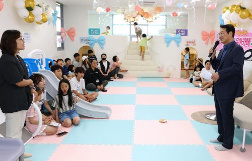 [½Åµ¿¾Æ¹æ¼Û Àü³²°­Áø=¹Ú±¤¿Á±âÀÚ] °­Áø±ºÀÌ Áö³­ 5ÀÏ, ±ºµ¿¸é ÄھƷçºí·çÇÉ¾ÆÆÄÆ® ´ÜÁö ³»¿¡ ¿µ¡¤À¯¾Æ¸¦ À§ÇÑ Àü¿ë °ø°£ ¡®À°¾ÆÄ«Æä¡¯¸¦ °³¼ÒÇϰí, ÀÔÁֹεé°ú ÇÔ²² ¶æ±íÀº °³¼Ò½ÄÀ» °¡Á³´Ù. À̹ø À°¾ÆÄ«Æä Á¶¼ºÀº ¾Æµ¿Ä£È­µµ½Ã¸¦ ÁöÇâÇÏ´Â °­Áø±º Á¤Ã¥ÀÇ Çϳª·Î, ¿µ¡¦