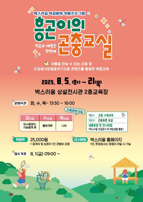 [½Åµ¿¾Æ¹æ¼Û ½ÃÈï½Ã=À̽ŵ¿±âÀÚ] ½ÃÈï½Ã °ïÃæÀü½ÃüÇè°ü ¡®¹÷½º¸®¿ò¡¯ÀÌ ¿©¸§¹æÇÐÀ» ¸Â¾Æ ÃʵîÇлýÀ» ´ë»óÀ¸·Î ÇнÀ°ú üÇèÀ» ÇÑ ¹ø¿¡ °æÇèÇÒ ¼ö ÀÖ´Â ¡®¿©¸§¹æÇÐ Èï°ïÀÌÀÇ °ïÃæ±³½Ç¡¯À» 8¿ù 5ÀϺÎÅÍ 21ÀϱîÁö ¿î¿µÇÑ´Ù. À̹ø ÇÁ·Î±×·¥Àº ¹÷½º¸®¿ò »ó¼³Àü½Ã°ü 2Ãþ ±³¡¦