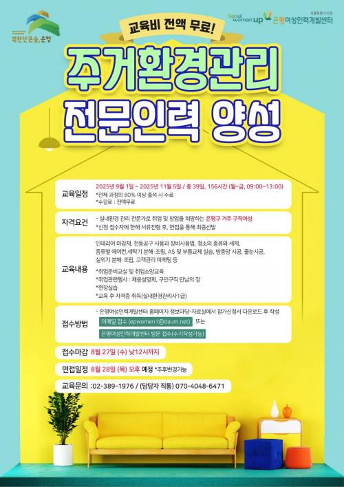 ÀºÆò±¸, ¿©¼º Ãë¾÷ Áö¿øÀ» À§ÇÑ ¡®ÁÖ°Åȯ°æ°ü¸® Àü¹®Àη ¾ç¼º °úÁ¤¡¯ ¼ö°­»ý ¸ðÁý