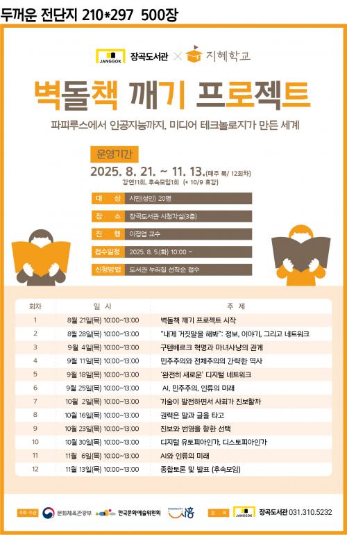 Àå°îµµ¼­°ü, ¡®2025 ÁöÇýÇб³-º®µ¹Ã¥ ±ú±â ÇÁ·ÎÁ§Æ®¡¯ ¿î¿µ