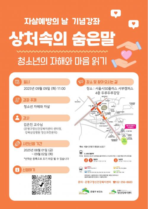 [½Åµ¿¾Æ¹æ¼Û ÀºÆò±¸=À̽ŵ¿±âÀÚ] ¼­¿ï ÀºÆò±¸´Â 9¿ù 10ÀÏ ¡®¼¼°è Àڻ쿹¹æÀÇ ³¯¡¯À» ¸Â¾Æ ³»´Þ 9ÀÏ ¿ÀÀü 11½Ã, ¼­¿ï½Ã50Ç÷¯½º ¼­ºÎÄ·ÆÛ½º 4Ãþ ¡®µÎ·çµÎ·ç°­´ç¡¯¿¡¼­ ¡®»óó ¼ÓÀÇ ¼ûÀº ¸»: û¼Ò³âÀÇ ÀÚÇØ¿Í ¸¶À½ Àб⡯ °­Á¸¦ °³ÃÖÇÑ´Ù°í ¹àÇû´Ù. À̹ø °­Á´ û¼Ò³â¡¦