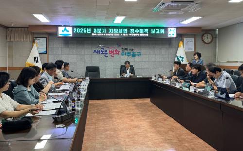 [½Åµ¿¾Æ¹æ¼Û ÀÎõ=À±¹Î½Ä±âÀÚ]ÀÎõ ¹ÌÃßȦ±¸(±¸Ã»Àå ÀÌ¿µÈÆ)´Â Áö³­ 24ÀÏ ±¸Ã» ÁßȸÀǽǿ¡¼­ ¡®2025³â 3ºÐ±â Áö¹æ¼¼ÀÔ Â¡¼ö ´ëÃ¥ º¸°íȸ¡¯¸¦ °³ÃÖÇß´Ù. À̹ø º¸°íȸ´Â ±èÀ»¼ö ºÎ±¸Ã»ÀåÀÇ ÁÖÀç·Î ÁøÇàµÆÀ¸¸ç, ±×°£ Áö¹æ¼¼ ¹× ¼¼¿Ü¼öÀÔ Â¡¼ö ½ÇÀûÀ» Á¡°ËÇϰí, ÇϹݱ⡦