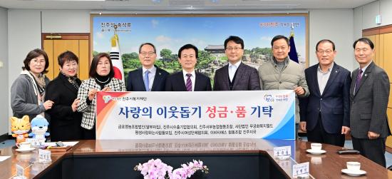 [½Åµ¿¾Æ¹æ¼Û °æ³²ÁøÁÖ=³²±Ã¿µ±â±âÀÚ] ÁøÁֽú¹ÁöÀç´ÜÀº 24ÀÏ ÁøÁÖ½Ãû ±â¾÷ÀÎÀÇ ¹æ¿¡¼­ Áö¿ª»çȸ ±â¾÷ ¡¤±â°ü¡¤´ÜüÀÇ ¾î·Á¿î ÀÌ¿ôµ½±â ¼º±Ýǰ ±âʽÄÀ» °¡Á³´Ù. À̹ø ±âŹ½Ä¿¡¼­ ±ÝÆ÷¿µ³óÁ¶ÇÕ¹ýÀÎ(¾ËºÎÀÚÁý)(´ëÇ¥ ¹®±¹µ¿)¿¡¼­ ¼º±Ý 1,000¸¸ ¿ø°ú °è¶õ 30±¸ 2,000ÆÇ(¡¦