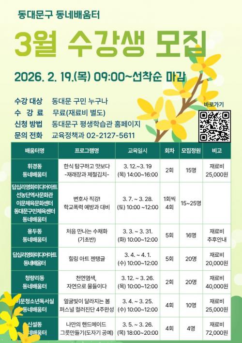 2026³â »ó¹Ý±â µ¿´ë¹®±¸ Æò»ýÇнÀ°ü ÇÁ·Î±×·¥ ¿î¿µ