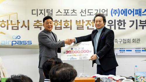 [½Åµ¿¾Æ¹æ¼Û Çϳ²½Ã=À̽ŵ¿±âÀÚ] µðÁöÅÐ ½ºÆ÷Ã÷ ¼Ö·ç¼Ç ¼±µµ±â¾÷ ¢ß¿¡¾îÆÐ½º°¡ Çϳ²½Ã üÀ° ¹ßÀüÀÇ ±Ù°£À» ¸¶·ÃÇϰí Áö¿ª»çȸ¿ÍÀÇ ½ÇÁúÀûÀÎ »ó»ýÀ» ½ÇõÇϱâ À§ÇØ Çϳ²½Ã Ã౸Çùȸ¿¡ ÈÄ¿ø±â±ÝÀ» Àü´ÞÇß´Ù°í ¹àÇû´Ù. ¢ß¿¡¾îÆÐ½º´Â Áö³­ 10ÀÏ ÁøÇàµÈ ÈÄ¿ø±â±Ý Àü´Þ½ÄÀ»¡¦