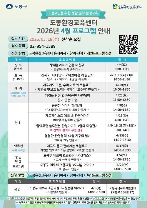 [½Åµ¿¾Æ¹æ¼Û µµºÀ±¸=À̽ŵ¿±âÀÚ] ¼­¿ï µµºÀ±¸°¡ 4¿ù ÇÑ ´Þ µµºÀȯ°æ±³À°¼¾ÅÍ µî¿¡¼­ ÃÑ 11Á¾ÀÇ È¯°æ±³À° ÇÁ·Î±×·¥À» ¿î¿µÇÑ´Ù. ÇÁ·Î±×·¥Àº À¯¾Æ, Ãʵî 3~4Çгâ, ¼ºÀÎ, °¡Á· ´ÜÀ§ ´ë»óÀ¸·Î ±¸¼ºµÆ´Ù. ¸ÕÀú À¯¾Æ ´ë»óÀ¸·Î´Â ¿À´Â 4¿ù 4ÀÏ ¡®»ýųîÀÌÅÍ ÀÚ¿¬Àº ³»Ä£±¸¡¯¡¦