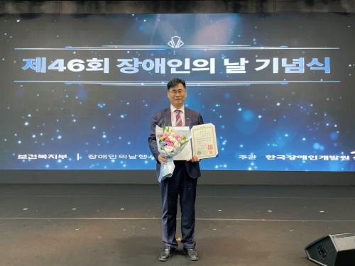 [½Åµ¿¾Æ¹æ¼Û Çϳ²½Ã=À̽ŵ¿±âÀÚ] Çϳ²½ÃÀå¾ÖÀκ¹Áö°ü ¹Îº¹±â °üÀåÀÌ 4¿ù 20ÀÏ ¿­¸° Á¦46ȸ Àå¾ÖÀÎÀÇ ³¯ ±â³ä À¯°øÀÚ Æ÷»ó¿¡¼­ ´ëÅë·É ǥâÀ» ¼ö»óÇß´Ù. ¹Îº¹±â °üÀåÀº 30¿© ³â°£ »çȸº¹Áö ÇöÀå¿¡¼­ Ȱµ¿Çϸç À̾î¿À¸ç Àå¾ÖÀÎÀÇ ±ÇÀÍ ÁõÁø°ú Áö¿ª»çȸ º¹Áö ¹ßÀü¿¡ ±â¡¦